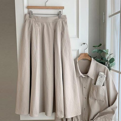 [샵앤][샵앤] 여성 뒷밴딩 간절기 바스락 플리츠 주름 롱 스커트 DGB-WSK-4203-베이지