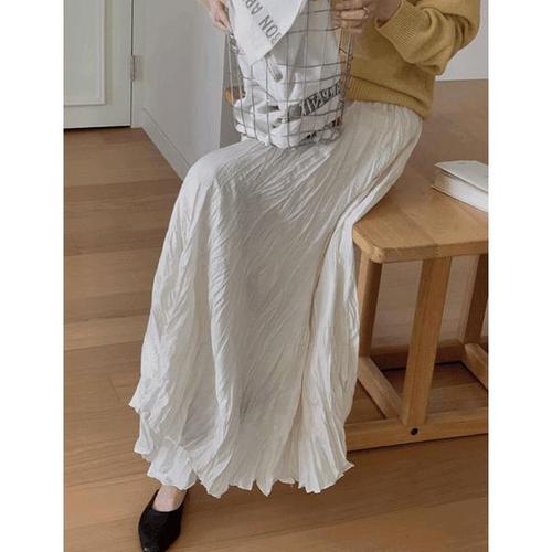 [퍼니걸스]8556 밴딩 링클 플리츠 주름 롱 스커트 여성의류