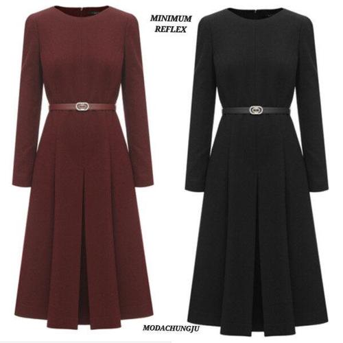 [퍼니걸스]라운드 주름 플리츠 A라인 긴팔 롱 원피스 (5칼라) 8980 여성의류
