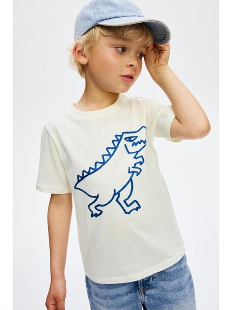[에이치엔엠] 엠브로이더리 코튼 티셔츠 화이트/공룡 1296423001
