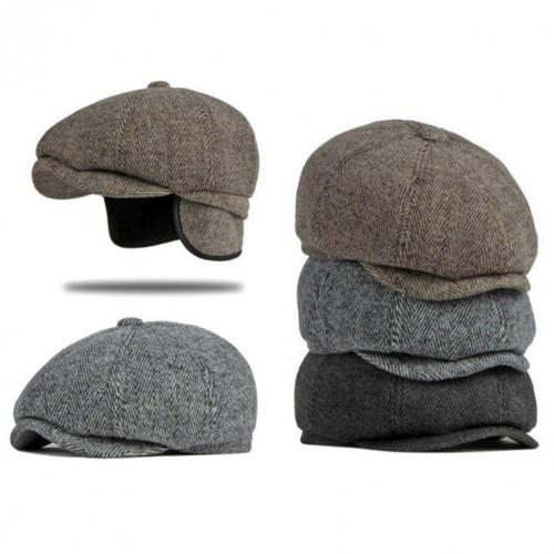 남성 체크 헌팅캡 모자 할아버지 겨울 울 중년 베레모 WFG21QR