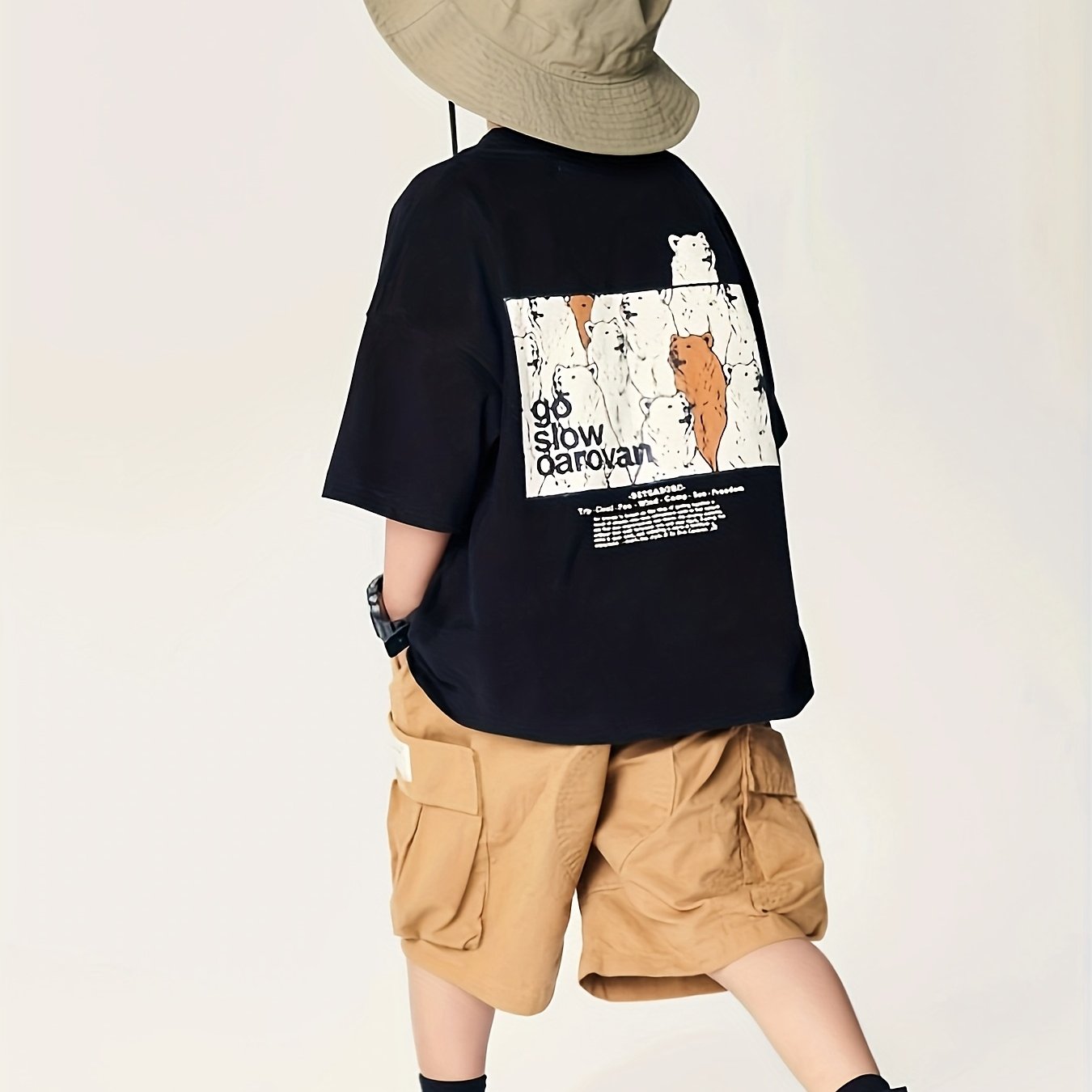 TEMU 2025년 트렌디하고 젊은 스타일의 남아용 반팔 티셔츠, 드롭 숄더의 편안한 핏으로 큰 아이들의 여름옷으로 완벽합니다.