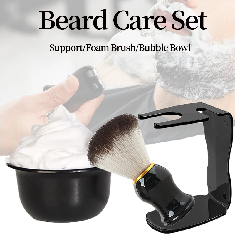 전문 남성 3in1 면도 브러쉬 세트 수염 스타일링 클리닝 브러쉬 스탠드 포밍 비누 그릇 그루밍 콧수염 관리 도구