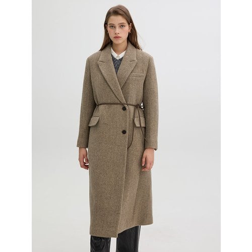 올리브데올리브 울혼방 헤링본 벨티드 롱코트 OW4WHB03
