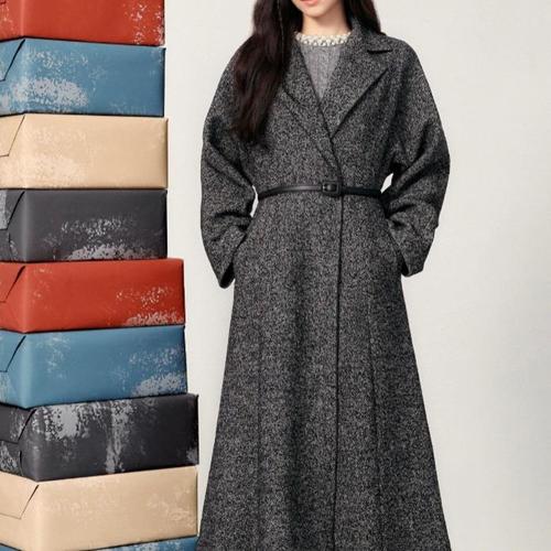 블루 울 여성 벨트 롱 따뜻한 겨울 코트 모직