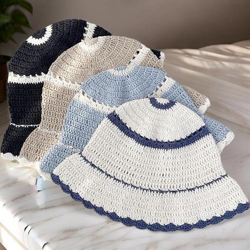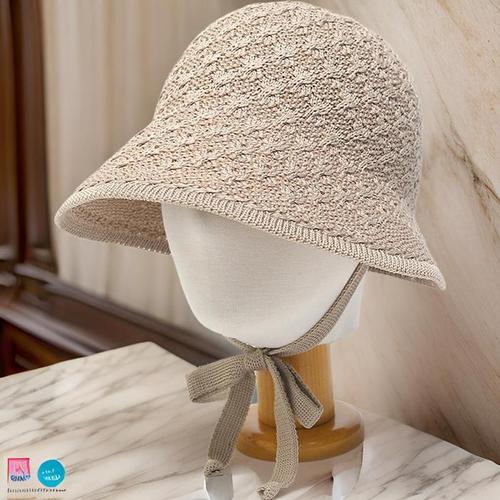 팸드님 국내제작 여름 니트 턱끈 벙거지 챙넓은 지사 혼방 버킷햇
