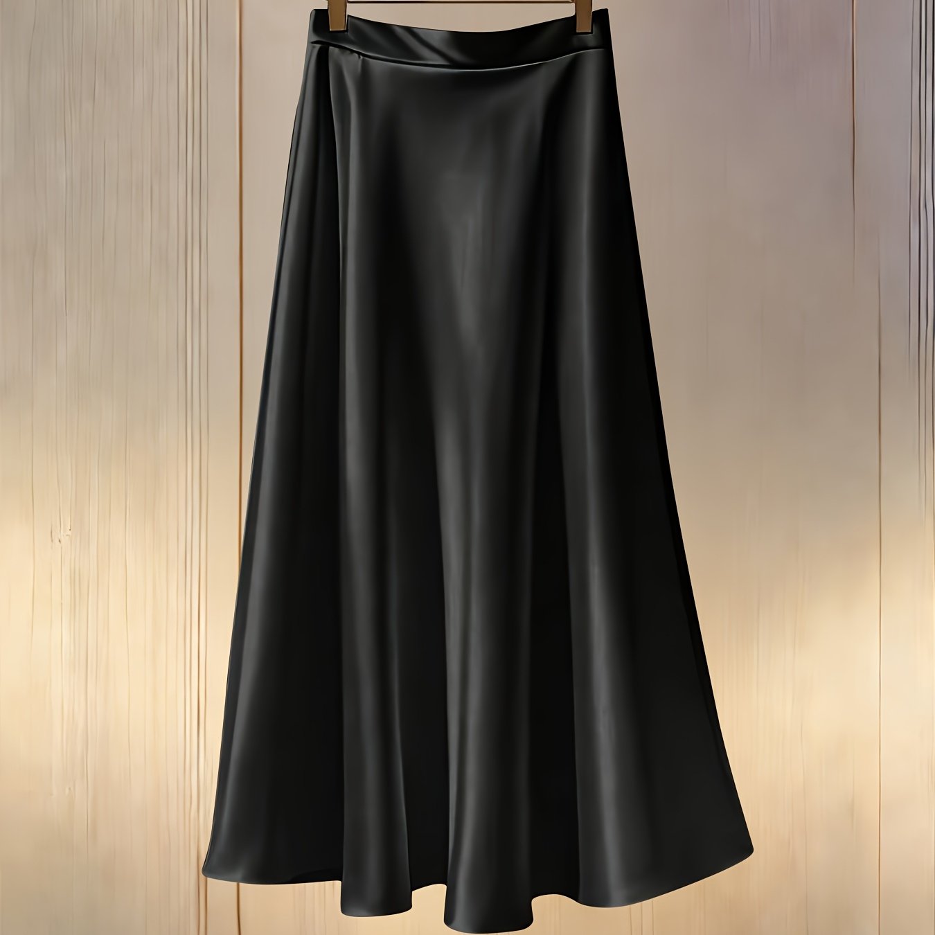 TEMU 여성용 하이웨이스트 새틴 플로우 A라인 스커트