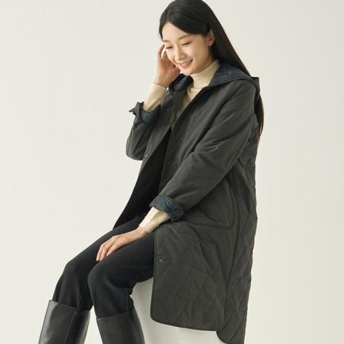 [지센][지센] 아웃퀼팅 체크 롱 점퍼 LSJPNA73_KH