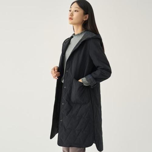 [지센][지센] 체크배색 방수 후드 롱 코트 LCCAN228_DN