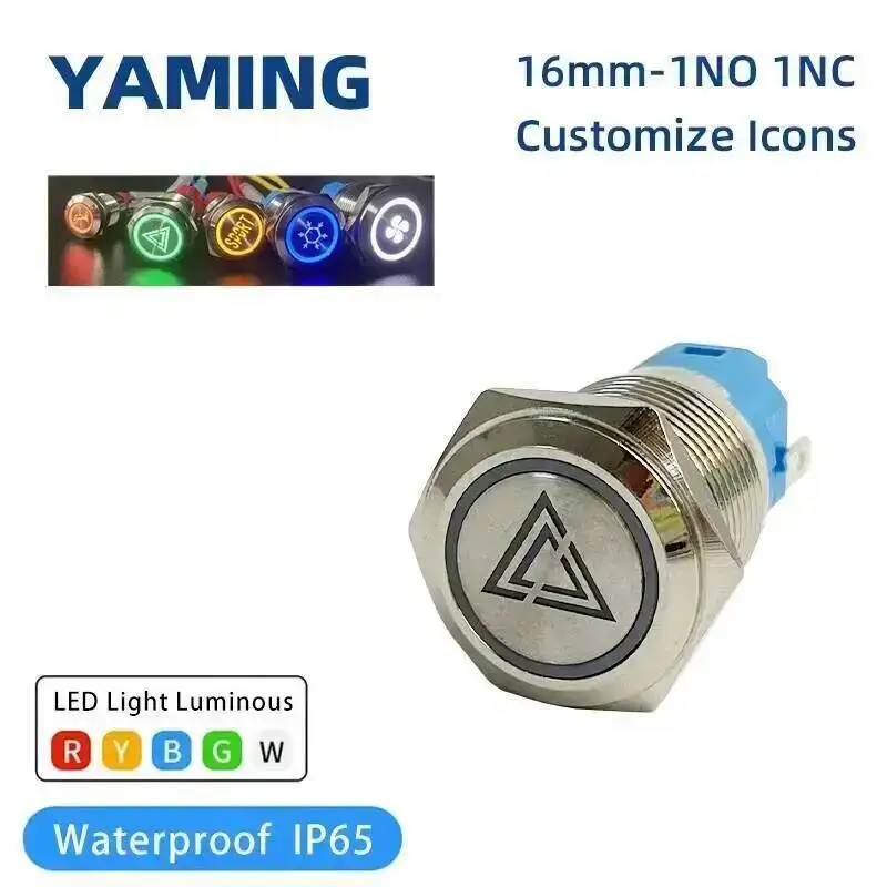16/19/22mm 플랫 라운드 수정 재설정 LED 조명으로 전원 공급 장치 사용자 정의 DIY 빛나는 문자 시작 중지 금속 푸시 버튼 스위치