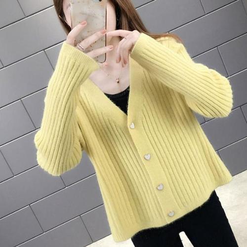 2024 신형 V넥 기질 소향풍 여성용 루즈한 스웨터 스웨터 전형 스웨터 외투 도매 특가 가디건 고가백합