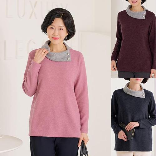 엄마옷 마담4060 이중주름진주폴라티셔츠-QTE2601052-