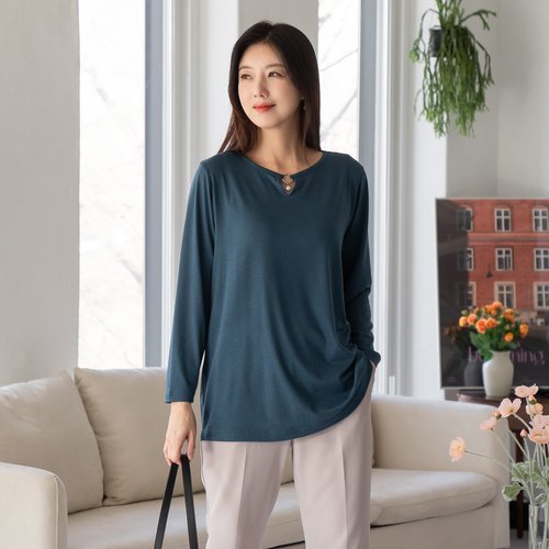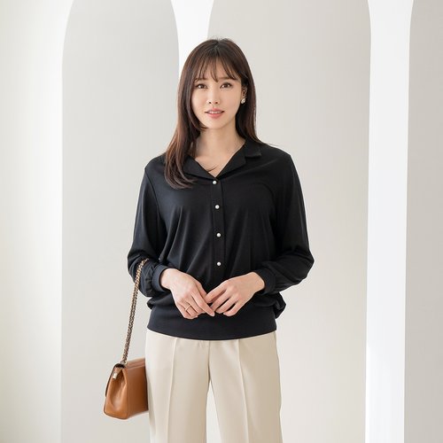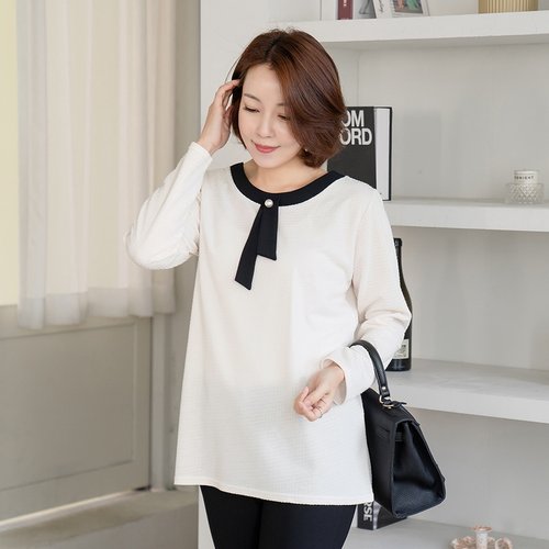 엄마옷 마담4060 오픈카라진주티셔츠-QTE2502032-