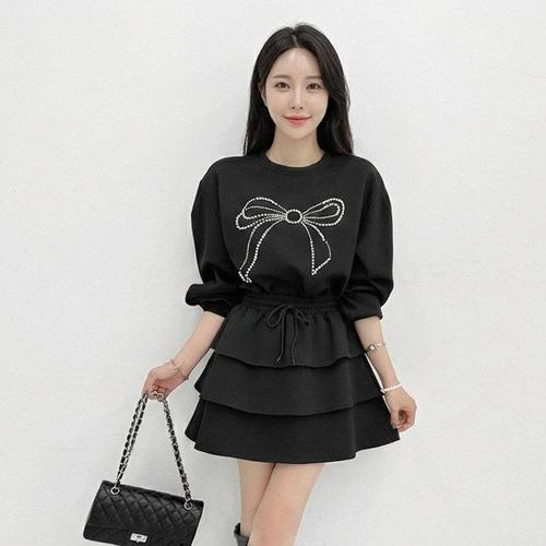 [금찌]니브 진주 티셔츠 스커트 세트 ST8001S