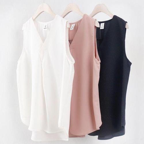 벨리시앙 세이브존01 플리츠 물결 슬리브리스 블라우스(3color) BL4204