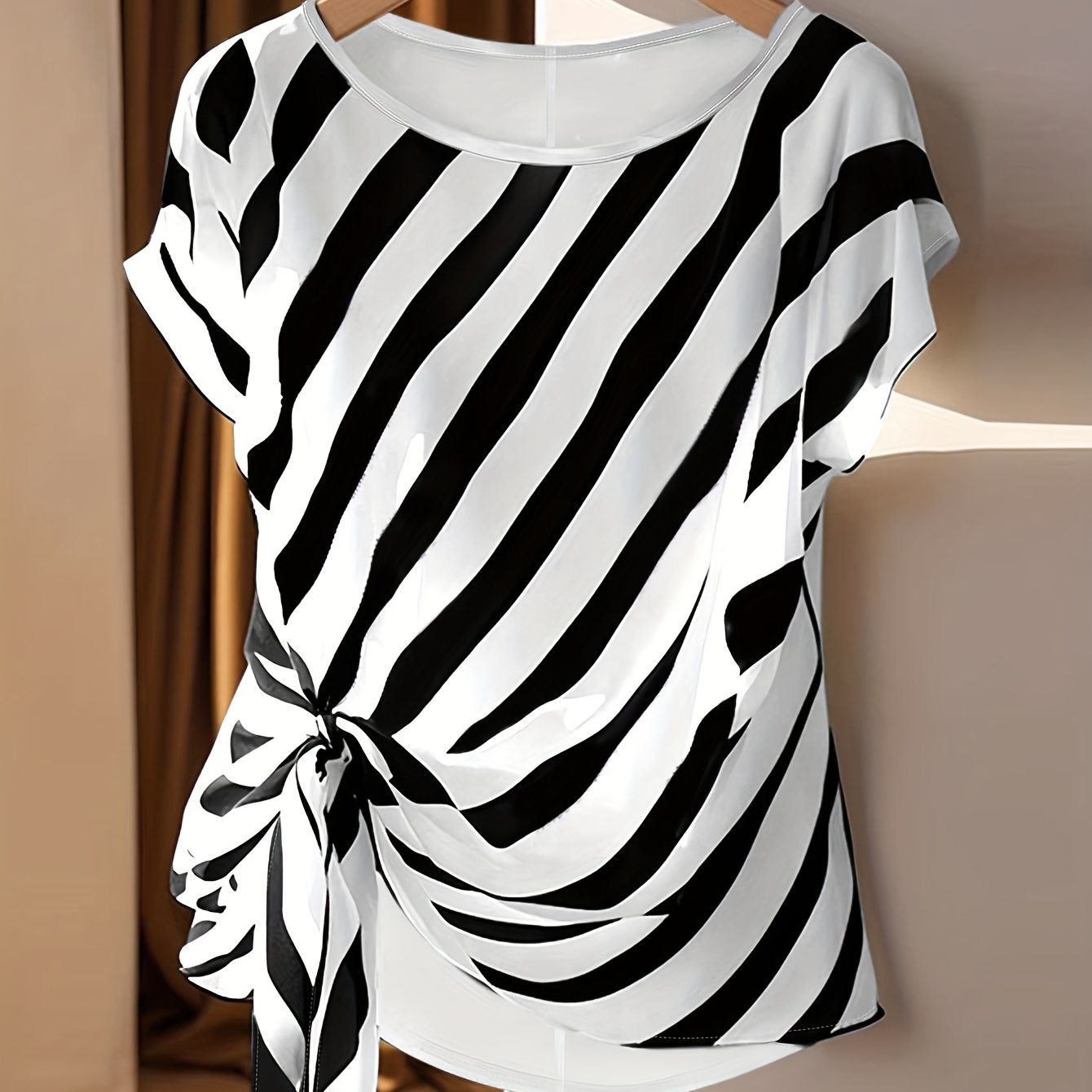 TEMU 캐주얼 여름 타이넥 민소매 보우 밑단 슬릿 블라우스