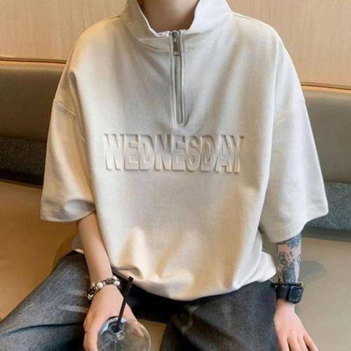 [에이치플러스몰]남자 반집업 반팔티셔츠 지퍼 하프넥 스포티 티셔츠