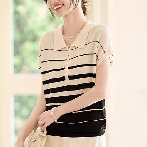 [패션이슈]메릴반지퍼단가라반팔니트 lude9e
