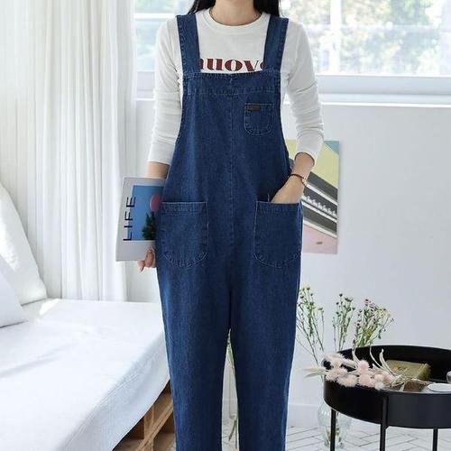 [다잇템]여성 세미배기핏 진 멜빕 주머니 점프수트