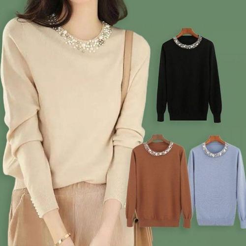 [에이치플러스몰]진주 니트 라운드니트 티 루즈핏니트 여성 가을