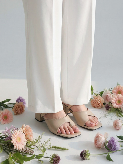 [사뿐] 미즈나 스퀘어 쪼리 슬리퍼 (1cm)