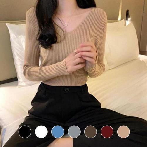 [셀러허브_여성트랜드패션]ONM 브이넥 데일리 이너 니트 가을 긴팔 기본 쫄티