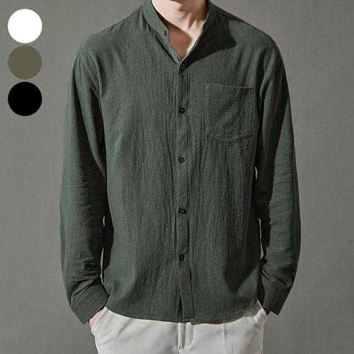 남성용 린넨 차이나카라 긴팔 셔츠 데일리 남방