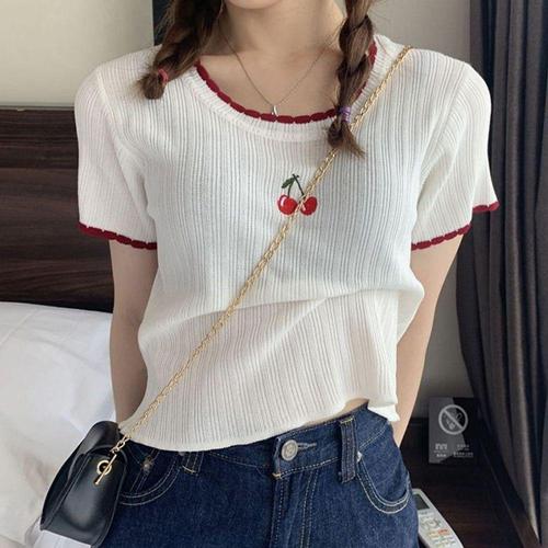 [셀럽하우스]여자 NHTJ4559 반크롭 스타일 체리 찰랑 반팔티 고품질 여름 데