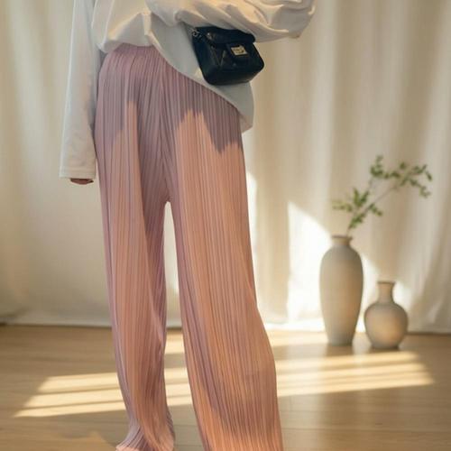 [신상오픈런]여성 폴리스판 찰랑이 와이드핏 핀턱 허리밴드 롱 팬츠