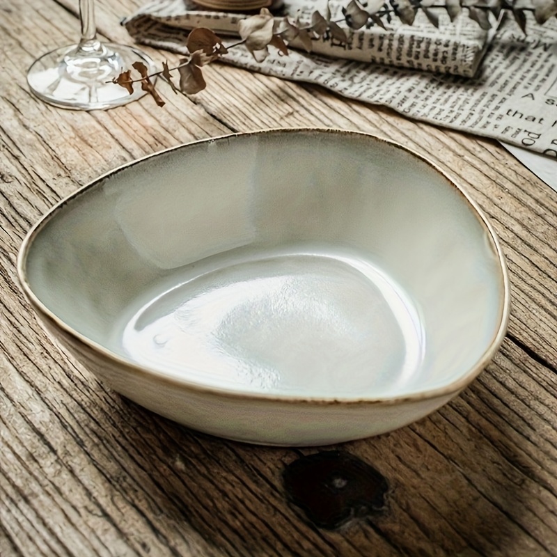 TEMU 1/2개 독특한 삼각형 디자인 세라믹 샐러드 볼 - 불규칙한 가마 유약 디자인, 예술 작품, 레스토랑 및 가정용, 파스타, 샐러드, 오트밀, 생동감 있는 식사 디스플레이, 선물용, 파스타 요리,예술적인 서빙 접시,수제 도자기,고품질 유약,스타일리시한 식기