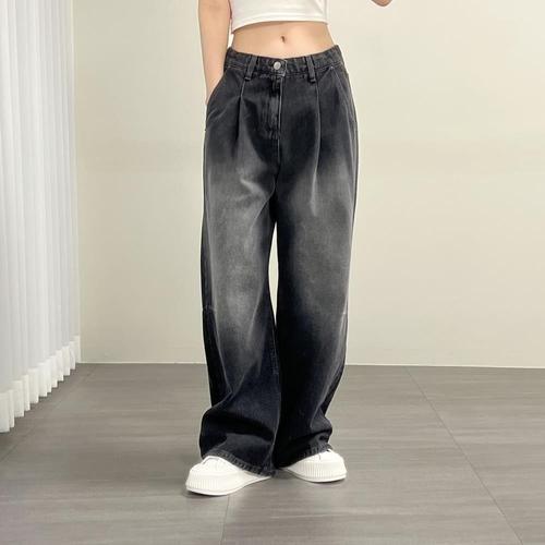[옷자락]여자 블랙팬츠 핀턱 찰랑 와이드핏 백레터링 청바지