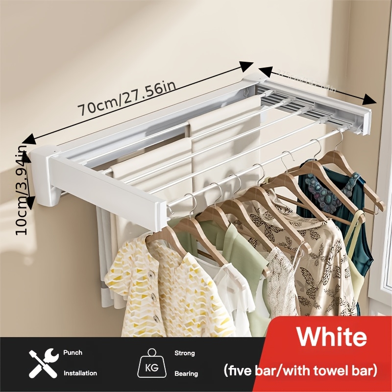 TEMU 천공형 벽걸이형 접이식 빨래 건조대, 발코니 수납식 신축식 빨래 건조봉, 가정용 고하중 보이지 않는 빨래 건조 겸용 수납대, 건조대