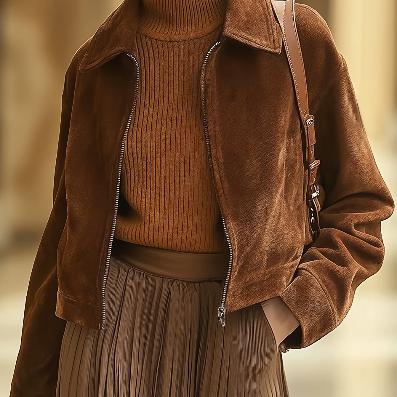 TEMU 가을, 겨울용 캐주얼 루즈 솔리드 컬러 스웨이드 지퍼 포켓 반팔 재킷