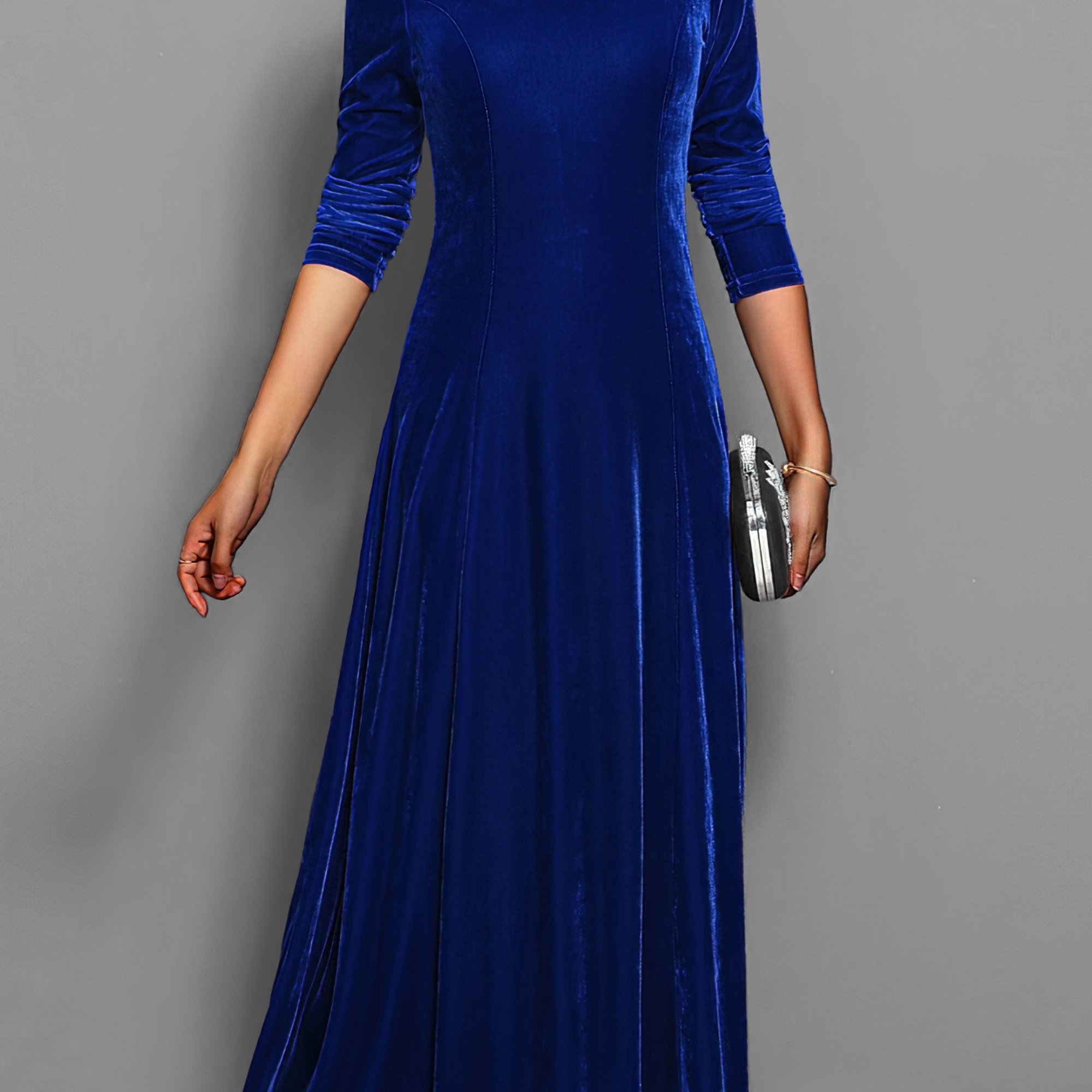 TEMU 여성용 우아한 벨벳 A라인 드레스 - 고신축 라운드넥 긴팔 솔리드 컬러 사계절 캐주얼~포멀 웨어 기계 세탁 가능