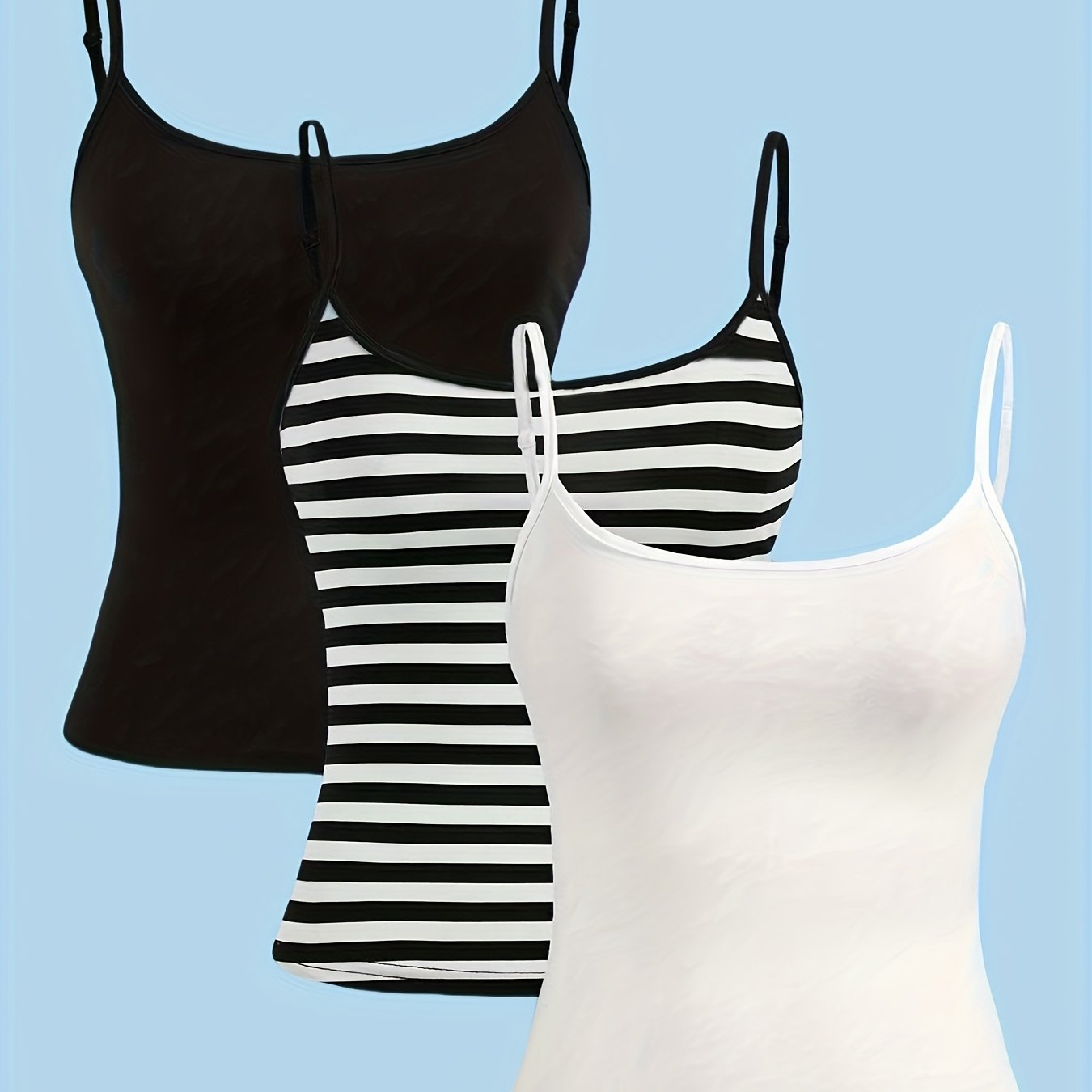 TEMU 3pcs 여성 캐주얼 스트랩리스 탱크 탑 - 블랙, 화이트 & , 편안하고 스타일리시한 봄 & 여름용, 슬리브리스 패션 탑| 캐주얼 스타일 탑| 스트레치 소재 탑