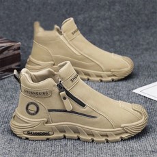 JUSTFEELING 남자 안전화 스니커즈 옆 지퍼 하이탑 경량 작업화 미끄럼방지절연 신발