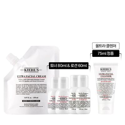 [10] 키엘 수분크림 리필 파우치 150ml 세트 (+클렌저 정품, 토너 80ml, 로션 60ml)