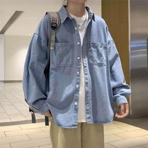 뎀피 남자 남성 릴렉스 루즈 오버핏 데님 청 긴팔 셔츠 남방