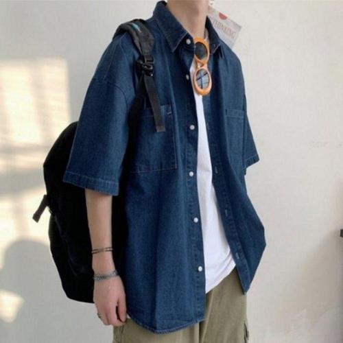남성 캐주얼 오버핏 2컬러 데님 반팔 셔츠 청남방