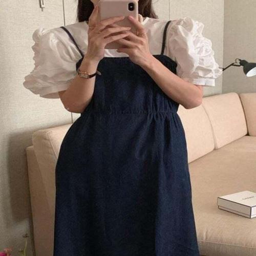 [셀럽하우스]멜빵 WKIL1040 청치마 바캉스룩 여름원피스 러블리 미니멀 양포