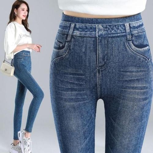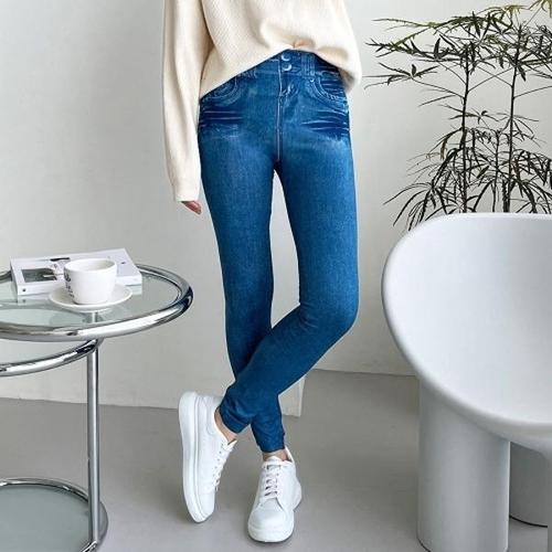 1pcs 여성 데님 프린트 레깅스 여성 패션 슬림 레깅스 가짜 청바지 레깅스 레이디 스트레치 프린트 스타킹 블랙 블루 바지