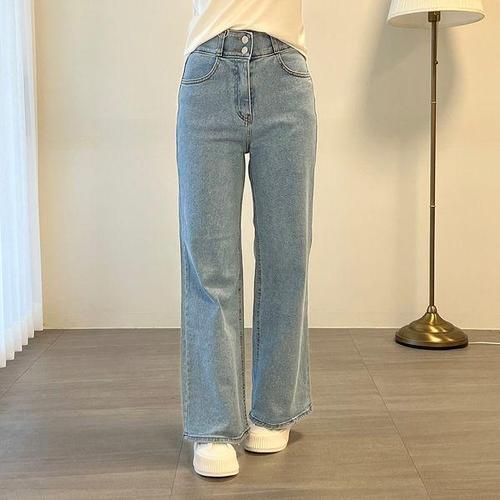 [옷자락]여자 투버튼 반하이웨스트 세미부츠컷 와이드 청바지