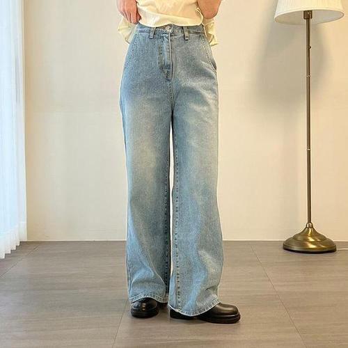 [옷자락]여자 반하이웨스트 일자 와이드 중청 데일리룩 청바지
