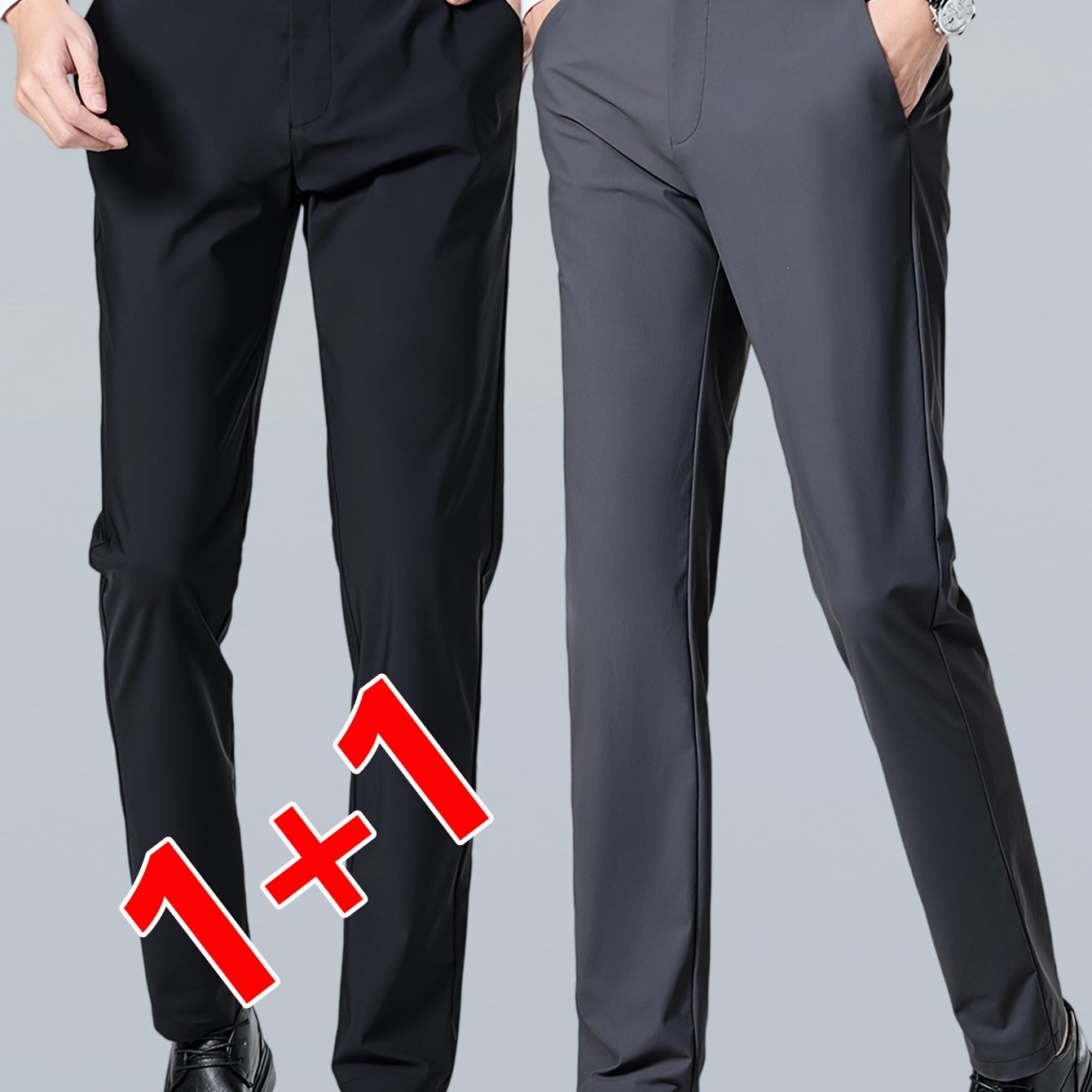 TEMU 2개 남성용 경량 비즈니스 캐주얼 드레스 팬츠 - 신축성 있는 폴리에스터-스판덱스 혼방, 레귤러 핏 미드라이즈 포켓, 세탁기 사용 가능, 봄/여름 사무실 및 공식 행사에 적합, 오피스 의상 | 노치드 라펠 디자인 | 다용도 패션