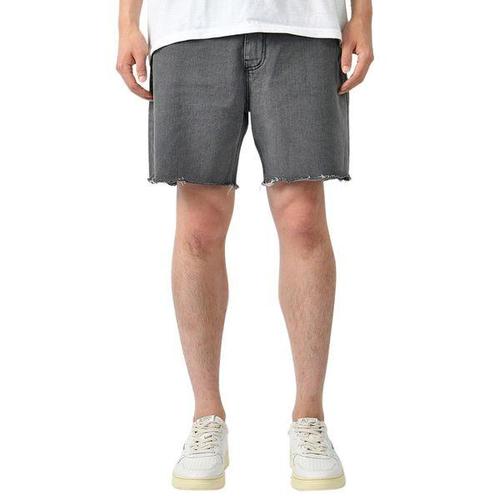 [핫코드]국내생산 남자 여름 그레이 루즈핏 밑단 컷팅 청 반바지 5부 바지 4004