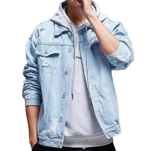 남성 워싱 데님 자켓 루즈핏 캐주얼 스탠드카라 집업 청자켓 아우터