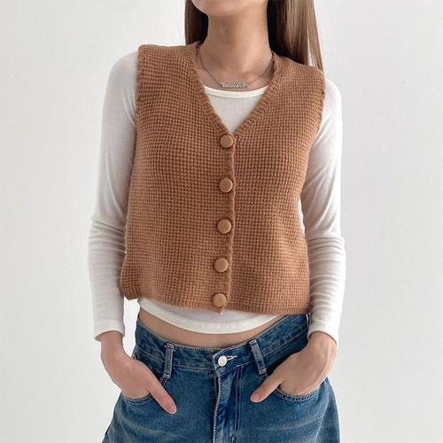 [다잇템]여자 V넥 청바지코디 위빙 스웨터 단추조끼 (18991894A)