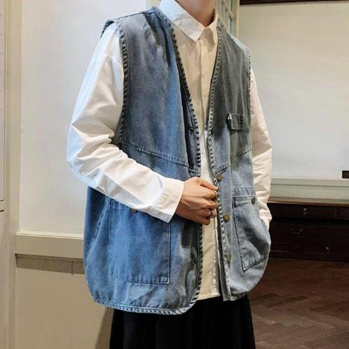 [셀럽하우스]빈티지 DCFX2674 오버핏 청조끼 베스트 복고풍 포켓 데님 조끼