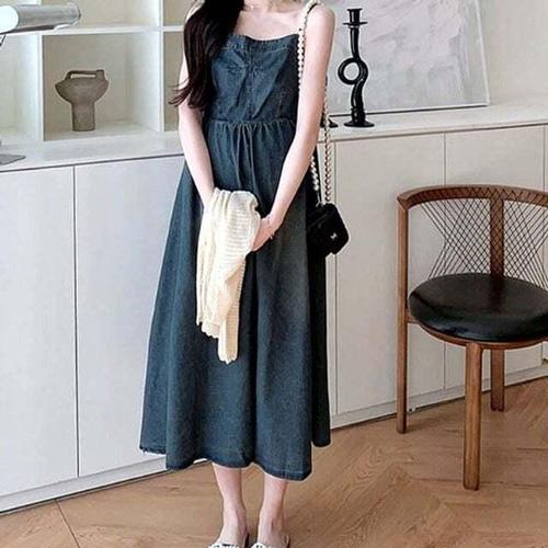 [셀럽하우스]여성 PNLZ2888 스모크 데님 끈나시 원피스 청 롱원피스 민소매