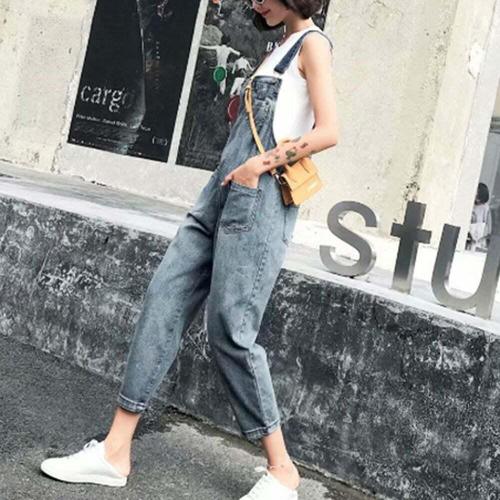 [SBD] 데일리 멜빵바지 오버롤 편안한 여성용 루즈핏 점프수트 데님 청바지